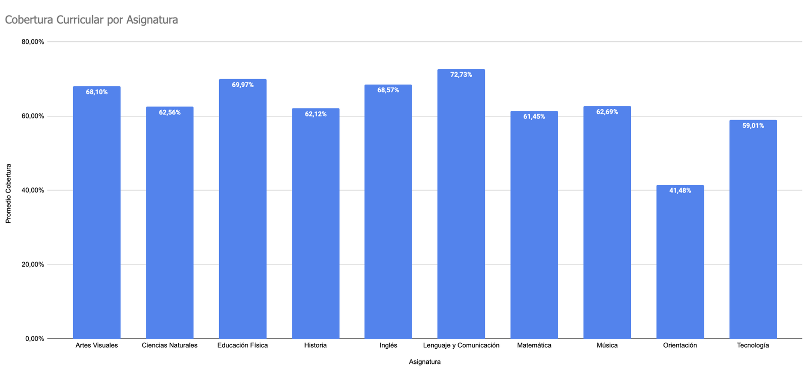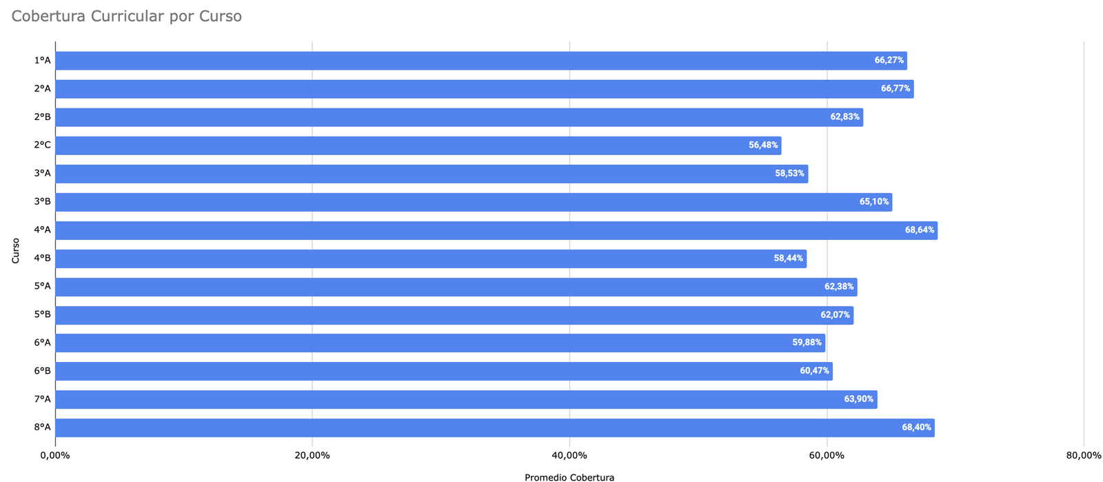 Gráficos Automáticos para Reuniones: Genera instantáneamente gráficos de barra y reportes visuales de cobertura por Curso y por Asignatura, ideales para presentar en consejos de profesores o reuniones de directorio sin trabajo extra.