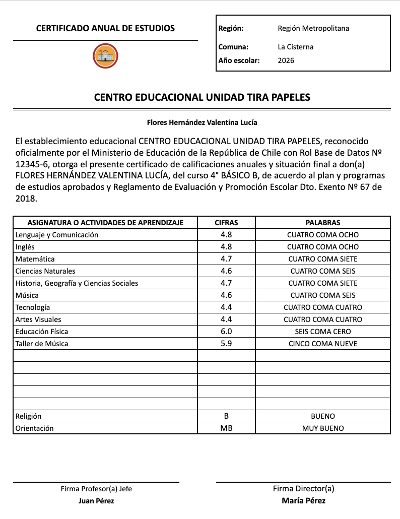 - Certificado Anual de Estudios (Individual) – Si te han solicitado solo uno > Imprime solo uno fácilmente.