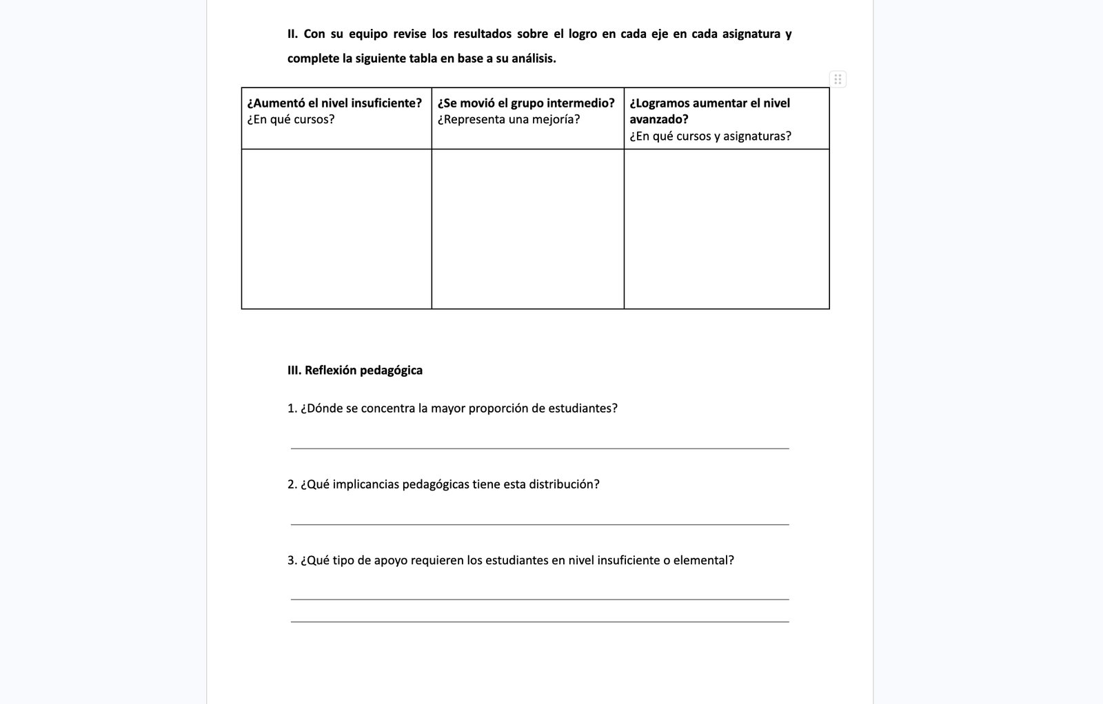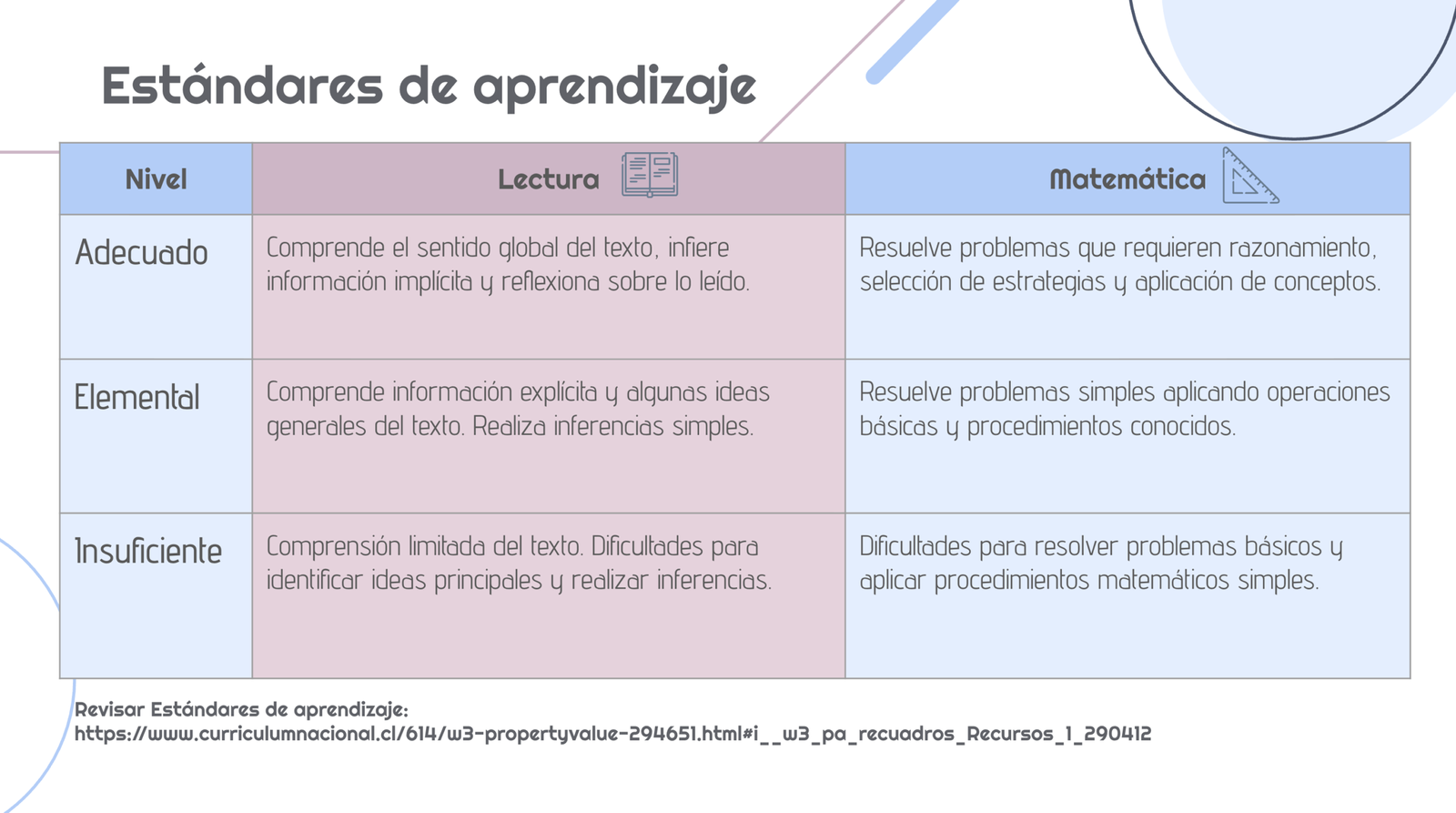 Revisión de niveles de logro